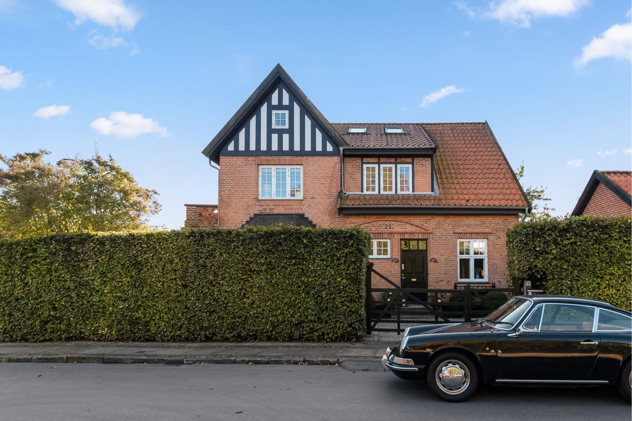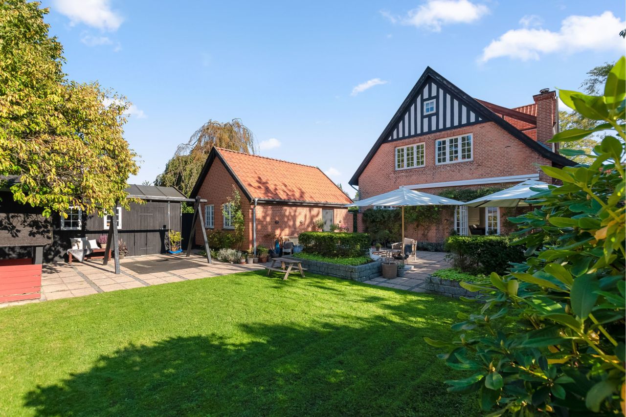 Velkommen til denne enestående liebhavervilla på en af de mest attraktive adresser i Årstidskvarteret. Her får I bopæl på en solrig og ugeneret hjørnegrund, hvor Forårsvej og Sommervej mødes. Allerede ved første øjekast imponerer denne velskabte rødstensvilla fra 1901, og både indvendigt og udvendigt træder husets tidsånd og oprindelige kvaliteter i karakter.Man er lykkedes med en perfekt harmoni mellem originale finesser og moderne, familievenlig komfort, der tager form via nøje udvalgt interiør, nuancer og materialer, som matcher den nostalgiske stil. Udover boligarealet på 219 kvadratmeter, som breder sig over 2 veldisponerede etager, så suppleres huset af både en ligeså indbydende 2. sal på ca. 55 kvm. samt samtidig yderst anvendeligt og godt isoleret, anneks/gæstehus med attraktive bonuskvadratmeter. Stueplan er dedikeret til opholdsrummene, der fordeler sig over to imponerende stuer (den ene i åben en suite-forbindelse med det flotte og funktionelle køkken). Den første stue er beriget med en smuk, svensk kamin i hvide porcelænsfacader, og der er dobbelt fløjdør til et charmerende herreværelse/bibliotek samt egen udgang til haven. Den anden stue er med store, smukke karnapper, hvoraf den ene er indrettet med speciallavet sofabænk, der skaber en fantastisk hyggekrog med lys fra tre forskellige verdenshjørner.Stueplan rummer også en elegant entré med høje paneler og smukt trappeløb, et praktisk viktualierum, et nydeligt badeværelse og et stort bryggers med ind- og udgange til begge sider.Førstesalen udgør en familievenlig soveafdeling, hvor den oplagte børne- og forældreafdeling fordeler sig på hver sin side af reposen. Der er naturligvis adgang til hvert sit badeværelse, ligesom forældresoveværelset disponerer over et stort walk in-closet og en skøn altan med morgensol. Slutteligt er der to store værelser på 2. sal, hvilket bringer det samlede antal værelser i huset op på 7 værelser. Ganske imponerende og et faktum der gør huset ideelt til den store familie. Et flot fliseanlæg i klassisk mønster skaber en fantastisk sammenhæng fra forhaven til baghaven, og den solrige have rummer al den idyl (og overkommelig vedligeholdelse) som gør, at sommeren kan nydes i fulde drag. I er sikret skønne rammer om hverdagen med godt naboskab, mange børnefamilier og bekvem gåafstand til det hyggelige handelsliv på Jægersborg Alle. Der er bogstaveligt talt et stenkast til Bernstorffsparken, og drages I af vandet, så venter Charlottenlund Fort, Skovshoved Havn og de hvide sandstrand få minutters kørsel herfra. Ved at bosætte jer her får I ikke blot en fænomenal liebhavervilla, men også en af Charlottenlunds bedste adresser.