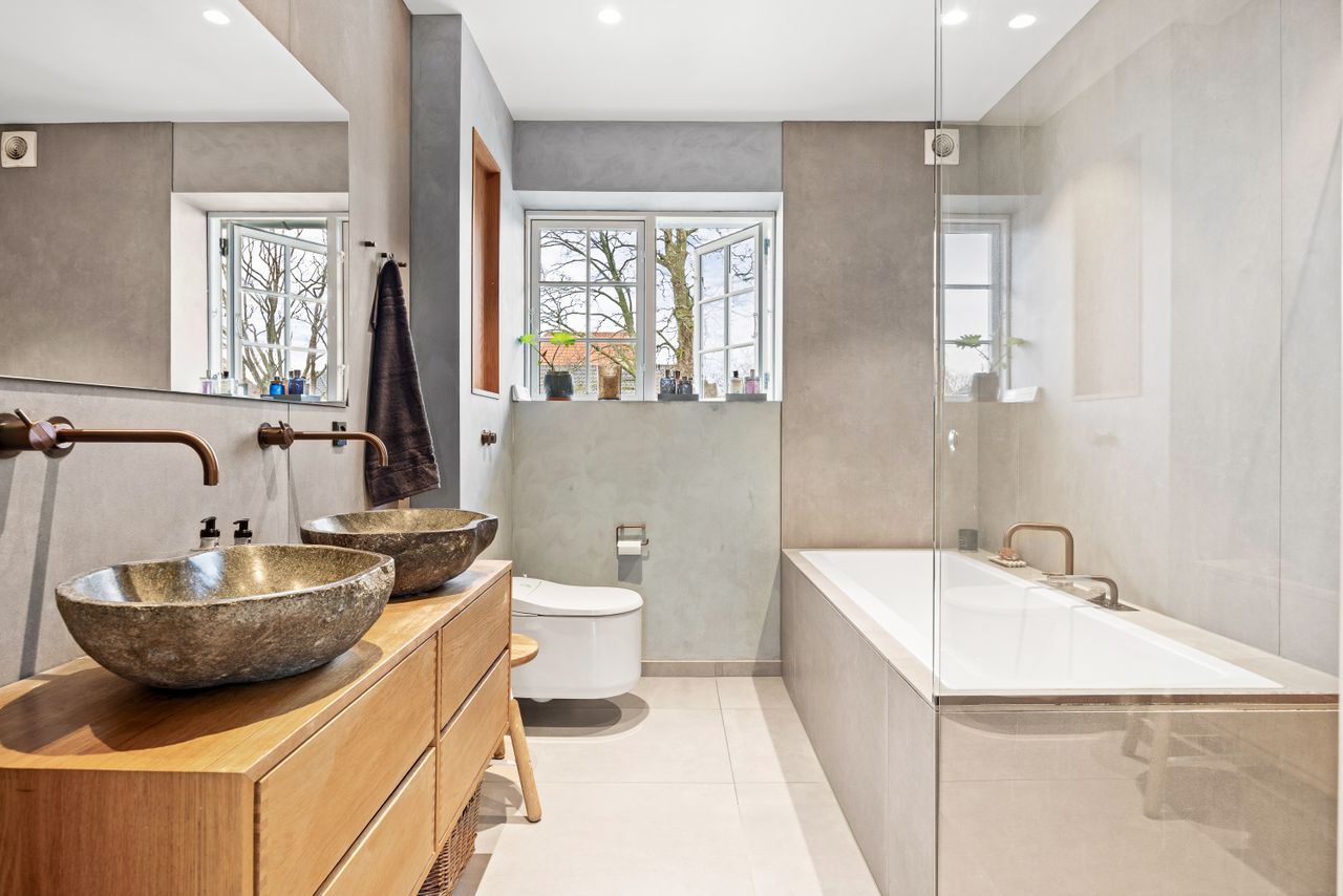 Renoveringen i 2019 omfattede gennemgående sildebensparket, gulvvarme på alle tre etager, nye toiletter og badeværelser med Vola-armaturer samt nye Bøjsø-vinduer. Huset er isoleret hele vejen rundt og har fået nyt tag, og energistandarden er tilsvarende høj. Samtidig er der opført en markant 50 m² tilbygning i et moderne design med køkken fra Handcrafted Interiors og imponerende gulv-til-loft-skydedøre, der åbner elegant mod den vestvendte terrasse og haven. Et sjældent hjem, hvor arkitektur, mod og funktionalitet er tænkt sammen – og hvor både inde- og udeliv opleves som en helstøbt helhed.