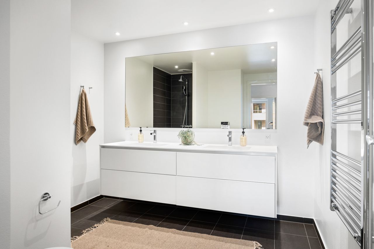 Lejligheden rummer 3 gode værelser, som giver fleksibilitet til både børnefamilien, parret med hjemmearbejdsplads eller til dig, der ønsker et ekstra gæsteværelse eller hobbyrum. Badeværelset er lyst og velindrettet med separat bruseniche og dobbelthåndvask. Et indbydende og elegant rum, da lejligheden også har et bryggers/vaskerum med vaskemaskine og tørretumbler. Det er både praktisk og giver både komfort og ekstra ro i hverdagen.